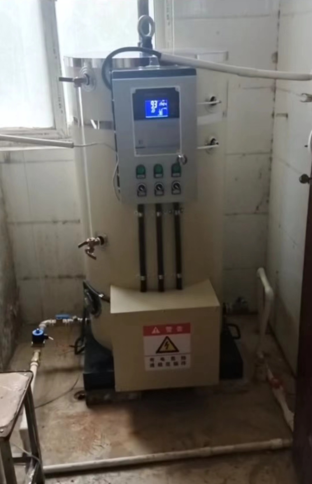 乘著蒙蒙的細雨,一路駕車來到開封市的杞縣第二高中,拆下已經使用五年老式電開水鍋爐,更換上一臺嶄新的可拆卸易除垢型電開水爐。