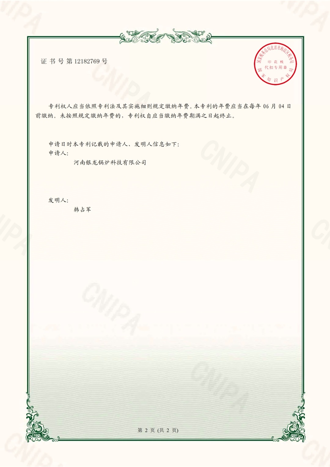 易除水垢電開水爐實用新型專利證書